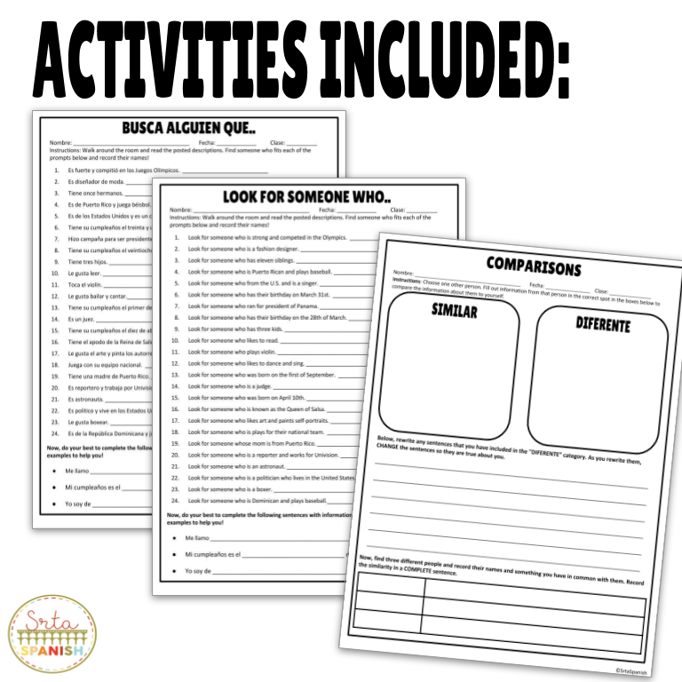 scavenger hunt activity in Spanish and English for students to complete. Hang the readings around the room and let them walk and read, practicing their comprehension skills!