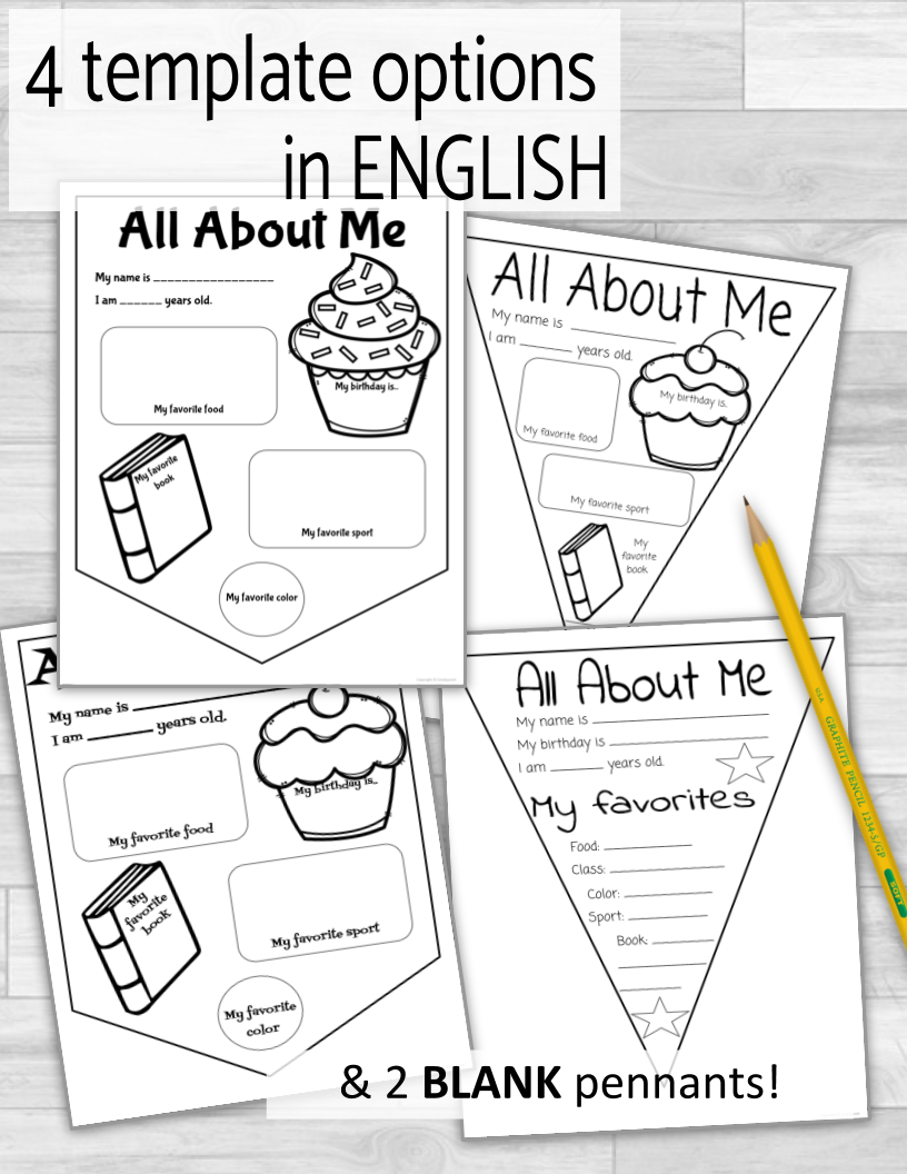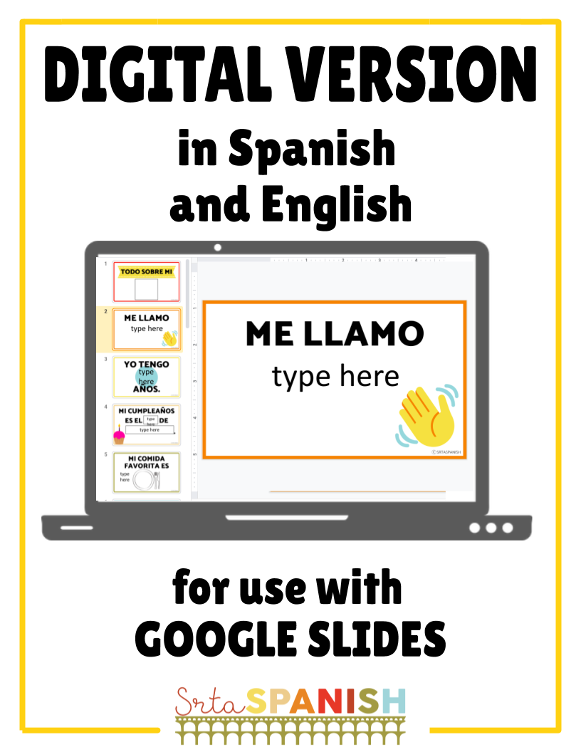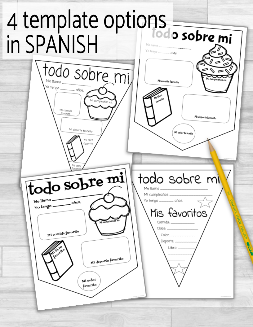 There are four variations in Spanish, four in English, and two blank templates to offer a wide variety of options and choices for your students. Have them decorate them, then hang them around your classroom or on a bulletin board. If you'd like to extend this activity for your class you could have them do mini-presentations to share about themselves.