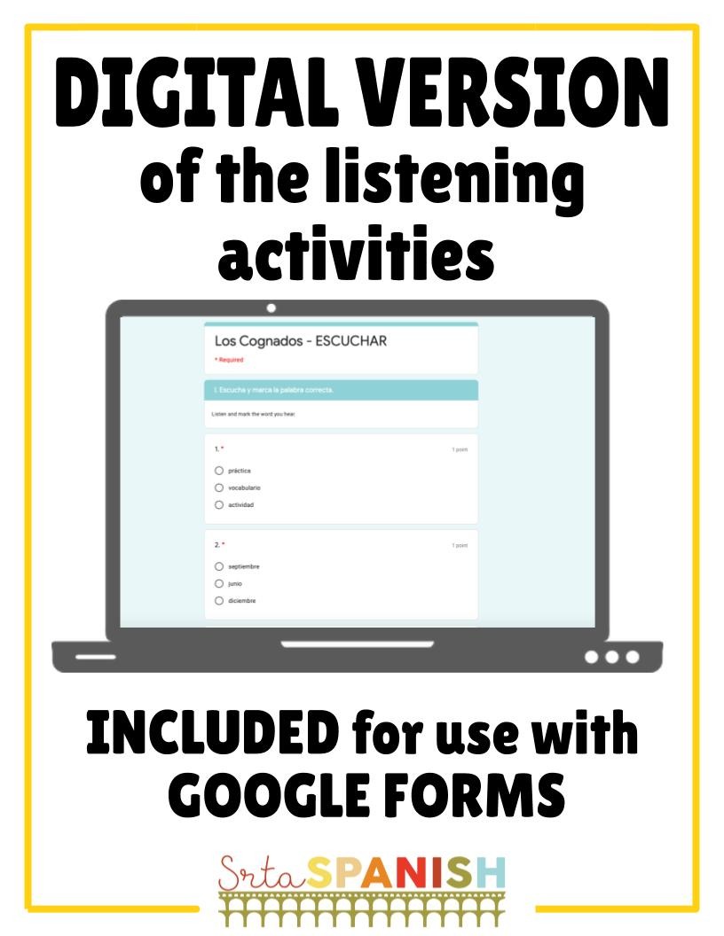 Fun activity for beginning Spanish students or a great review for an intermediate student. This includes seven listening activities focused on listening for cognates, ranging in difficulty. Listening files, student sheets, and answer keys included!